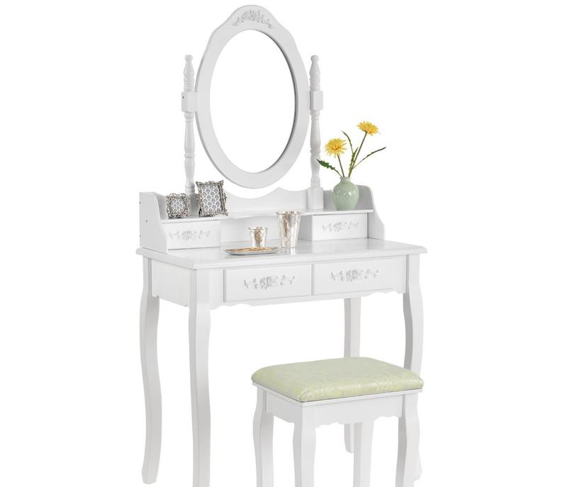 Туалетний столик MIRKA Туалетний столик MIRKA. Гарний косметичний туалетний столик з табуретом і знімне подовження з шарнірним дзеркалом. Стілець в сучасному вікторіанському стилі. Ручне виконання. Зроблений з якісних і міцних матеріалів. Характеристики: • розмір столика: 70,5х75х40 см • розмір стільця: 44х37х28 см • матеріал: MDF, дерево • пластикова оббивка: 100% поліестер • колір: білий Доставка і Оплата: · Доставка у відділення «Нова пошта» / БЕЗ ПЕРЕДОПЛАТИ / Оплата готівкою при отриманні товару. З допомогою доставки «Нова пошта», Ви можете отримати товар навіть у найвіддаленіших куточках України. · Перевірте товар на пошті перед його оплатою. · Будемо вдячні вам за відгук після покупки в нашому інтернет-магазині. Якщо ж виникнуть проблеми з товаром, не поспішайте залишати поганий відгук, а зв'яжіться з менеджером для вирішення вашої проблеми. · Доставка без передоплати, товарів вартістю до 50 000 грн. · Дякуємо за ваш вибір! Сподіваємося, що вам сподобається наше обслуговування.