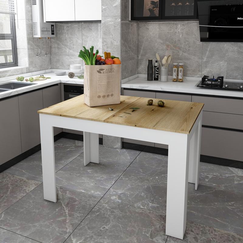 Стіл у кухню Doros Флінт 120(170)х80х78 см у кольорі Білий + Дуб артизан Стіл у кухню Doros Флінт (120x80x78 см) - стильне і функціональне рішення для вашої кухні або їдальні. Поєднання білого кольору і дуба артізан надає столу сучасного та елегантного вигляду, який легко впишеться в будь-який інтер'єр. Функція розкладання дає змогу збільшити довжину столу до 170 см, що ідеально підходить для прийому гостей. Дизайн і зручність Елегантне поєднання білого кольору і дуба артізан створює стильний і затишний вигляд. Стільниця розміром 120x80 см у складеному вигляді та 170x80 см у розкладеному забезпечує достатньо місця для комфортного прийому їжі та проведення заходів. Висота столу 78 см забезпечує зручність та ергономічність під час використання. Якість і довговічність Стіл Doros Флінт виготовлений із високоякісних матеріалів, що забезпечує його довговічність і стійкість. Надійна конструкція і механізми розкладання гарантують стабільність і міцність при щоденному використанні. Якісне оздоблення і ретельне складання забезпечують довгий термін служби виробу і зручність в експлуатації. Характеристики Тип: Стіл у кухню Стиль: Сучасний Висота (мм): 780 Глибина (мм): 800 Ширина (мм): 1200 (у розкладеному вигляді 1700) Матеріал каркаса: ДСП Матеріал стільниці: ДСП Колір товару: Білий + Дуб артизан Призначення: Для кухні, Для їдальні Виробник: Doros