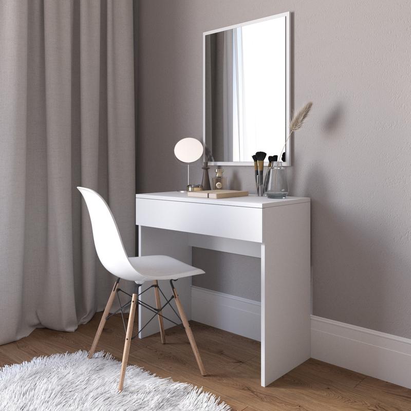 Туалетный столик c выдвижным ящиком D-3 Туалетный столик - станет отличным решением для создания полноценной и комфортной рабочей зоны в домашних условиях. Достоинства стола: - занимает минимальную площадь - легко очищаемая поверхность - выдвижной ящик Вы также можете использовать его в качестве письменного стола для своего ребенка. *Зеркало D-4 не входит в комплект, продаётся отдельно Материал: ДСП Ламинированное 16мм Размеры (Ш/В/Г): 800 / 760 /400 мм Доступен для заказа в 5 цветах: Белый, Дуб Сонома, Бетон, Венге Темный, Антрацит
