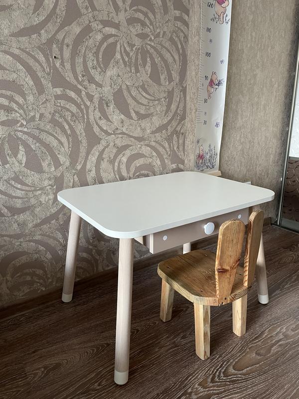 Продаем детский столик с стульчиком Состояние стола идеал. Размер стола прямоугольный 68^50 46/50/55 Стульчик самодельный, минусы видны на фото, но все лакируется и не видно. Ножки сменные, можно заказать в магазине и стол станет выше Выдвижной ящик с специальной с отверстиями, чтобы не прижать пальчики ребенку. От рюмка. Бралы в инсталграме kykybrand.uaa только столик за 2350