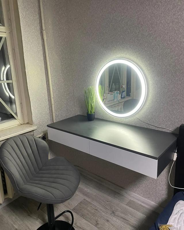 Подвесной туалетный столик Собственное производство Первое фото это фото-отгук, чтобы вы знали как выглядит прием Материал: ламиновая ДСП, толщина 16 мм Размер: Ширина: 1200 мм Высота: 160 мм Глубина: 500 мм Кольори: Белый Дуб сонома Бетон Венге темный Антрацит Капучино Апалачи Аруша Фасады доступны во всех вышеназванных цветах, доступны любые комбинации цветов корпуса и фасада. Доставляется Новой Поштой по всей Украине в разобранном виде (это уменьшает риск повреждений и значительно снижает стоимость доставки) В комплекте есть вся необходимая фурнитура и пошаговая инструкция по сборке, все отверстия проскальзаны.