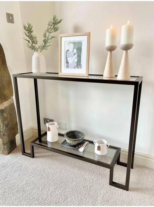 Hudson Glass — изящная металлическая консоль с двумя стеклянными ярусами для декора и организации. Прозрачное стекло 6 мм визуально «облегчает» интерьер, подчеркивает аксессуары, а стальная рама из профильной трубы 20×20 мм гарантирует стабильность каждый день. Размеры 110×30×85 см позволяют ставить консоль в прихожей, вдоль стены в гостиной или под большое зеркало. Собственное производство ТМ МСМ. Специфика товара: Ширина - 110 см Глубина - 30 см Высота - 85 см