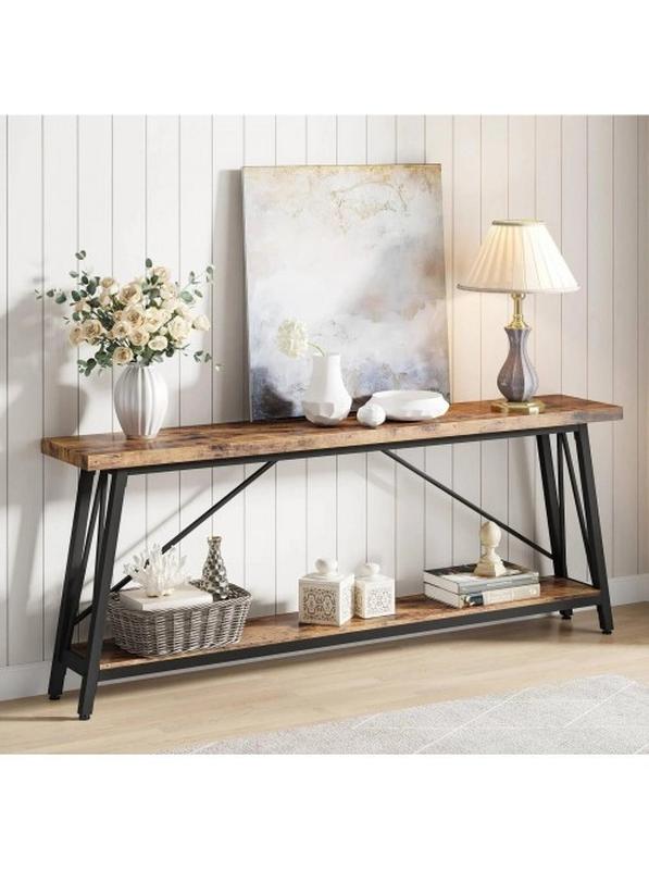 Классический удлиненный консольный стол сочетает минималистичный вид и ежедневную функциональность. Верхняя длинная поверхность удобно держит лампы, вазы, рамки и органайзеры, а нижний ярус – книги, корзины и аксессуары. Формат 1800 мм длины при 300 мм глубины остается комфортным в узких проходах; высота 800 мм удобна для доступа и декорирования. Основа - металлический каркас из профильной трубы 20×40 мм, полки - ДСП 16 мм в черный, белый, дуб сонома, дуб родос, орех цвета. Треугольная структура повышает жесткость, а регулируемые накладки на ножки удерживают консоль ровно и защищают покрытие. Модель уместна как диванная консоль, акцент в прихожей или узкая этажерка в гостиной. Доставка по Украине, сервис MSM. Собственное производство ТМ МСМ. Габариты стола: Высота - 800 мм Ширина - 1800 мм Глубина - 300 мм