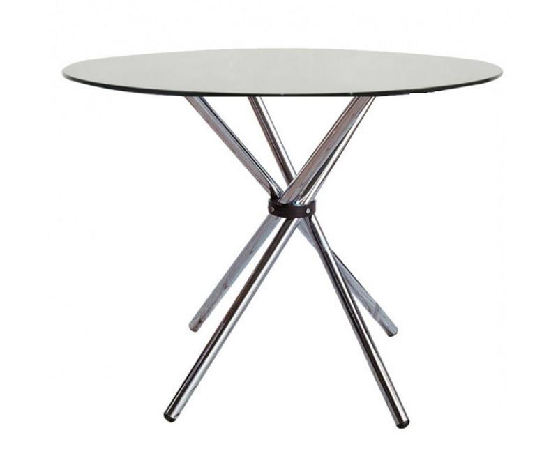 Обеденный стол круглый стеклянный, столешница из закаленного прозрачного стекла толщиной 8 мм, что делает эту модель легкой в современном интерьере, металлические ножки с покрытием из нержавеющей стали, размер стола: диаметр столешницы 80 см, высота 75 см.