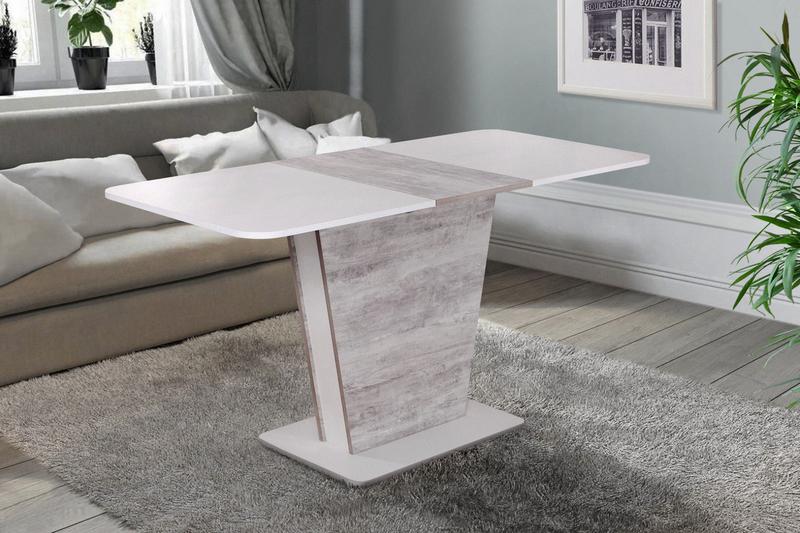 Размер: 1100(+350)*680. H: 765.Цвет: Каркас: Белый; Столешня: ДСП SWISSPAN Урбан Лайт+вкладка белый Материал: ДСП ламинированное.
