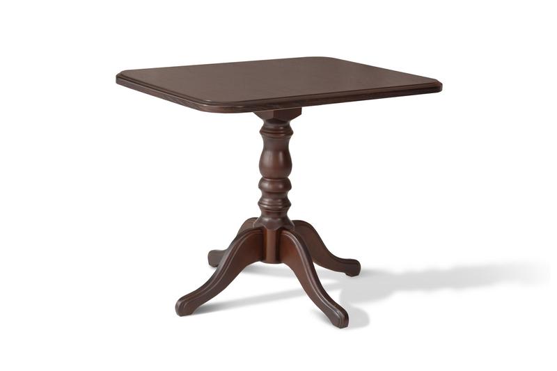 Розмір: 900*680, h: 735 Колір: Темний горіх Матеріал: Каркас: масив дерева; Столешня: шпонований дубом МДФ Моно - не розсувний стіл для вітальні з натурального дерева з елегантною точеною ніжкою. Торці столу красиво зафрезовані та пофарбовані. Столик виготовлений з масиву натурального дерева (каркас та ніжки). Стільниця виготовлена з плити МДФ, покритої шпоном.