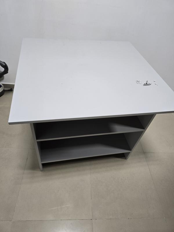 Продаю стол серого цвета, размера 100×96, высота 86. Вместительные полки. Состояние отлично.