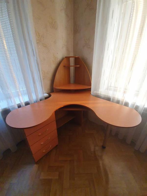 Продам письменный угловой стол, он был изготовлен на заказ, очень качественный и удобный. Есть полки для системного блока, монитора, выдвижная полка для клавиатуры.