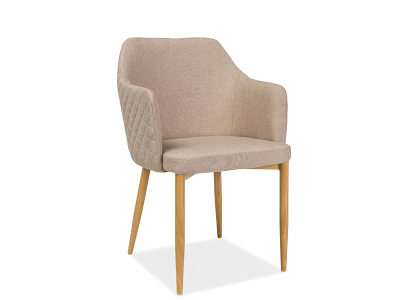 Повечеряти з королівським комфортом у звичайній домашній обстановці дозволить стильний і зручний стілець Astor Signal. У складі обідньої групи представлений предмет меблів прикрасить своєю присутністю інтер'єр модернової вітальні, при цьому забезпечуючи максимальну зручність сидячої за столом людини. Конструкція стільця більше нагадує лаконічне крісло в мініатюрі, завдяки чому дана модель буде органічно виглядати в інтер'єрі затишного ресторану або в офісній лаундж-зоні. Основою стільця Astor служить дерев'яний каркас з чотирма круглими ніжками, одна пара яких розташована під легким ухилом для забезпечення підвищеної стійкості. На цій візуально крихкій, але досить міцній основі розташоване глибоке сидіння зі спинкою, яке плавно переходить в високі зручні підлокітники. М'яка тканинна оббивка сидіння з зовнішньої сторони декорована дрібним ромбовидним рядком. Характеристики Стілець Astor SIGNAL : Матеріал: метал, оббивка - тканина. Колір на вибір: дуб+сірий, дуб+беж. Розміри: Ширина стільця: 46 см Глибина сидіння: 46 см Висота стільця зі спинкою: 84 см Висота ніжки: 47 см.