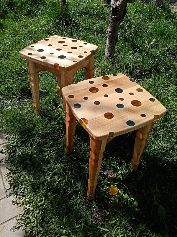 Материал ясень +эпоксидная смола. Покрытие ПУ лак. Размер 30х30х44 см.