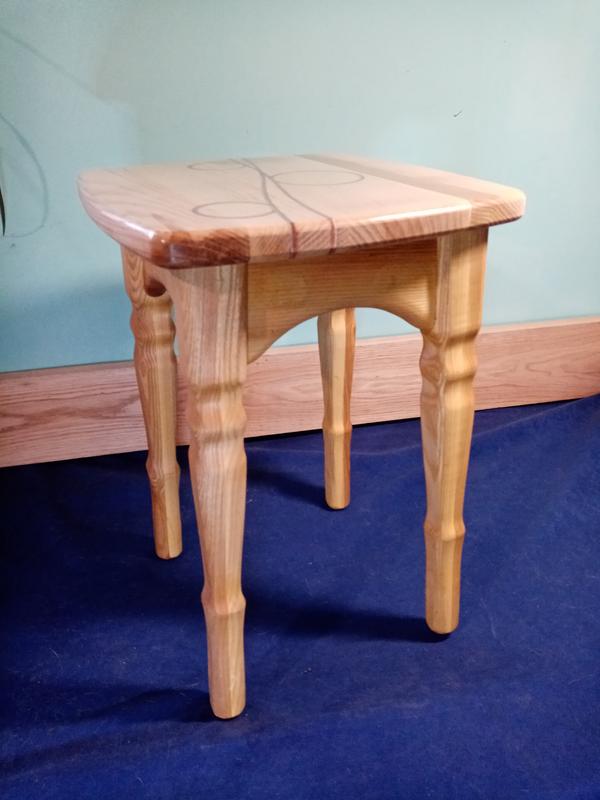 Материал ясень. Инкрустация медь, алюминий. Покрытие ПУ лак. Размер 30х30х44 см