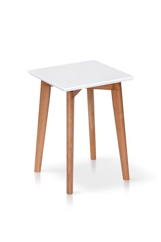 Размер: 300*300; h=450 мм. Цвет: Каркас: натуральный; Сиденье: белый. Материал: Каркас: массив ольхи; Сиденье: МДФ окрашенный.