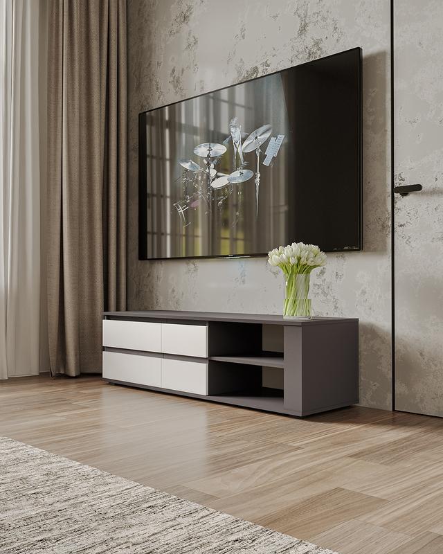 Тумба под телевизор Т205 Цвет: белый дуб сонома бетон вензе темный Общие размеры: Ш*В*Г 1600*450*80