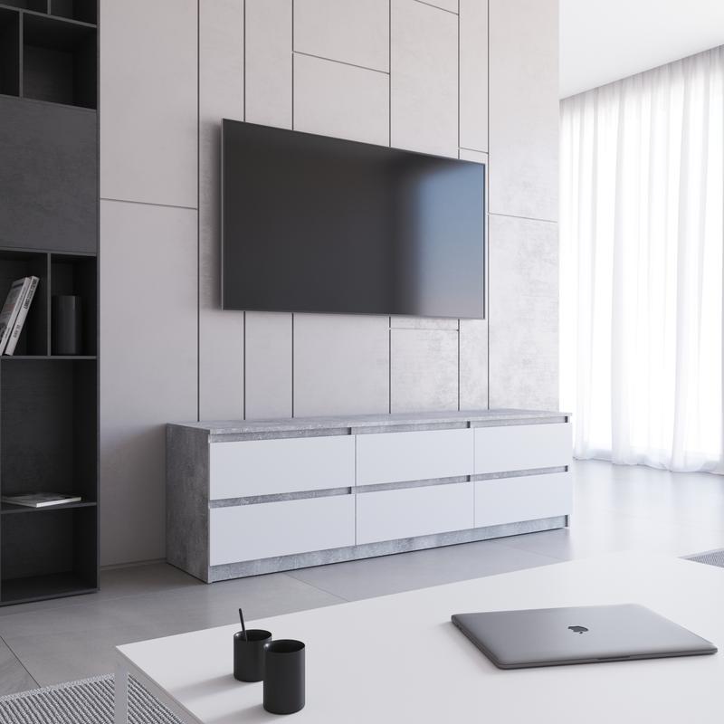 Тумба для телевизора R - 12 Собственное производство Материал: ламиновая ДСП, толщина 16 мм Размеры: Ширина: 1802 мм Высота: 531 мм Глубина: 400 мм Кольори: Белый Дуб сонома Бетон Венго темный Антрацит Бетон + белый Дуб сонома + белый Венго темный + белый Антрацит + белый Доставляется Новой Поштой по всей Украине в разобранном виде (это уменьшает риск повреждений и значительно снижает стоимость доставки) В комплекте есть вся необходимая фурнитура и пошаговая инструкция по сборке, все отверстия проскальзаны.