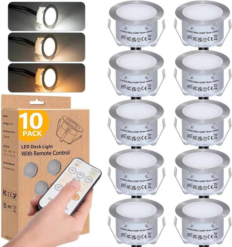 З пультом керування Таймер : 4\8\12год Можливість зменшення або змільшення яскравості світла. Кольори освітлення: білий, жовтий , жовто-білий Напруга: DC12V Вихідна потужність: 0,8 Вт Світловий потік: 6 ЛМ Водонепроникність : IP67 Застосування: всередині та на вулиці Довжина дроту: подвійна 0,5 м Відстань між кожним світлом: 1 м Колір та матеріал корупусу: срібляста високоякісна нержавіюча сталь 304/316 Розмір: Φ30 * H26 мм Уцінка. Вітринний варіант