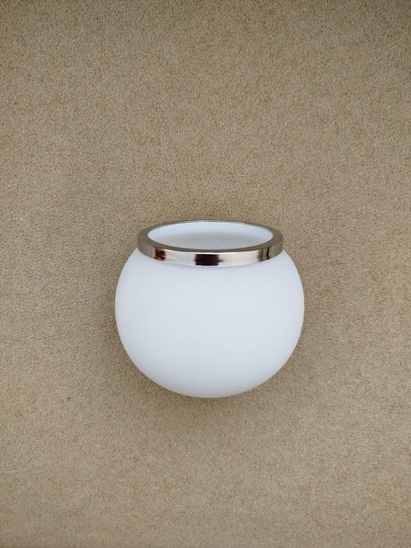 Запасной плафон для люстры светильника бра торшера Материал - стекло + металл Цвет - белый + серебро Диаметр - 12,5-13 см Высота - 10 см Диаметр посадочного отверстия - 41-43 мм Диаметр выходного отверстия - 8 см Замеры сделаны на одном конкретном плафоне и могут незначительно отличаться на других Отправка любой почтой Если не находите среди моих плафонов нужного, спрашивайте