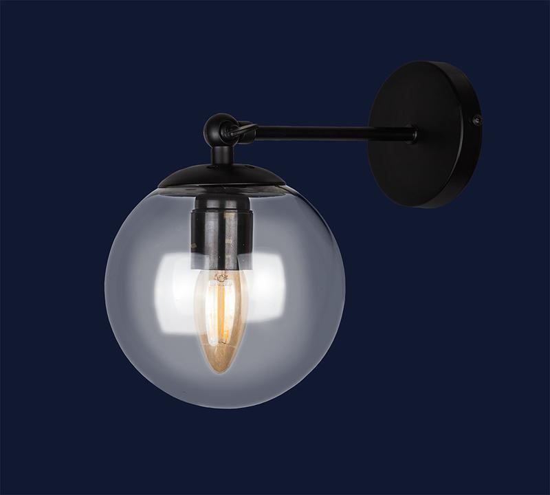 Матеріал - метал + скло Колір - чорний + прозорий Діаметр плафону - 150 мм Тип кріплення - настінний коло Матеріал кріплення - метал Колір кріплення - чорний Тип кріплення - настінний Діаметр кріплення - 100 мм Джерело світла - 1 Е27 лампа Максимальна потужність лампочки - 40 W Можливість використання лампи LED, світлодіодна, энергосберигающая.