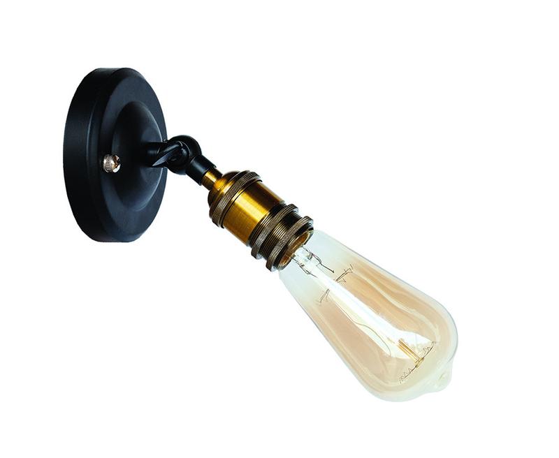 Колір кріплення до стіни - чорний Матеріал кріплення - метал Тип кріплення - настінний Патрон - AMP 14 Колір патрона - золото Тип цоколя - Е27 Максимальна потужність лампочки 60 Ватів Можливе використання лампи : світлодіодна, енергозбережна, розжарювання, лампа Едісона Комплектація лампою : немає