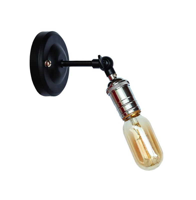 Колір кріплення до стіни - чорний Матеріал кріплення - метал Тип кріплення - настінний Патрон - AMP 17 Колір патрона - хром Тип цоколя - Е27 Максимальна потужність лампочки 60 Ватів Можливе використання лампи : світлодіодна, енергозбережна, розжарювання, лампа Едісона Комплектація лампою : немає