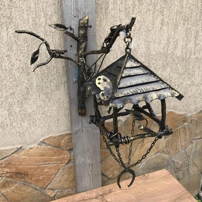 Настенная бра может быть не обычным светильником, а шедевром, который может украсить ваш дом и подчеркнуть особенности домашнего интерьера. Вот кованый бра ручной работы. Это сделано в виде ветки дерева, оно висит на хорошей ветке и имеет хороший ствол дерева. Крепится к стене. Светильник состоит из бабочки, паука, паутинки, жука, гнезда, гусеницы. Вы не найдете ничего подобного. Очень декоративно! Размеры лампы: высота - 25 см, длина - 25 см, ширина - 25 см Размер ствола дерева: высота - 49 см, ширина - 65 см Длина ветки: 35 см Имеется электрический кабель. Цвет: черный, покрытый золотой патиной (искусственное старение). Индивидуальные заказы приветствуются (разного цвета, размера, содержимого).