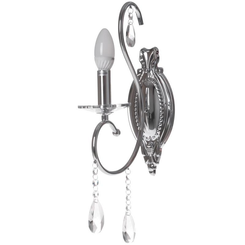 Бра BCL-660W/1 E14 CH підкуповує легким мінімалізмом в художньому виконанні, нехитрою конструкцією, кришталево чистими спадаючими підвісками зі скла. В силу своєї простоти світильник виглядає аж ніяк не бідно, навпаки, дозволяє поєднувати його, наприклад, з дзеркалом, картиною, каміном. Бра виготовлено з металу і скла. Конструкція складається з металевого хромованого кронштейна, основи і патрона для лампочки, поміщеного в скляну тарілочку. Додатково конструкція декорована підвісками зі скляними прозорими гранованими камінчиками. У включеному стані лампи, вони переливаються райдужними відблисками, створюючи надзвичайно красиву гру світла. Зовні конструкція даного світильника нагадує старовинний канделябр, ось тільки замість воскової свічки джерелом світла служить одна електрична лампочка з цоколем Е14 потужністю 40 Вт. Бра можна використовувати в житлових приміщеннях, залах ресторанів, готельних номерах класу люкс.