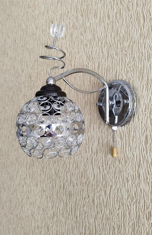 Бра светильник на стену Материал корпуса - металл Материал корпуса - серебро Материал плафона - металл + хрусталь Тип патрона - E27 --- Пересылаю любой почтой