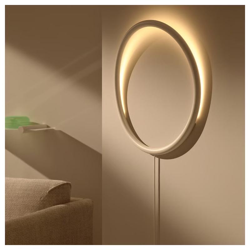 Ikea нова, на жаль не підійшла. VARMBLIXT LED wall lamp, white metal/circle Розміри товару: Довжина кабелю: 2.0 м Глибина: 7 см Діаметр: 50 см Світловіддача: 330 Люмен Сила: 3.8 Вт Орієнтовний термін служби: 25000 грodz. Цей виріб може потребувати складання. Головні риси: Ви коли-небудь відчували секунди перед сонячним затемненням? Тоді ви напевно впізнаєте сяйво цього круглого світлодіодного настінного світильника. Його м'яке світло, немов прекрасна картина, неодмінно приверне увагу. Він поширює м'яке, атмосферне світло вгору і за поверхню, де вигнутий настінний світильник. Вам ніколи не доведеться замінювати лампочку, оскільки ця лампа має вбудоване світлодіодне джерело світла. Використання світлодіодних ламп як джерела світла означає, що вони не тільки служать у 20 разів довше, ніж звичайні лампи розжарювання, але й споживають до 85% менше енергії.