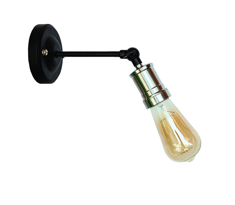 Колір кріплення до стіни - чорний Матеріал кріплення - метал Тип кріплення - настінний Патрон - AMP 20 Колір патрона - хром Тип цоколя - Е27 Максимальна потужність лампочки 60 Ватів Можливе використання лампи : світлодіодна, енергозбережна, розжарювання, лампа Едісона Комплектація лампою : немає