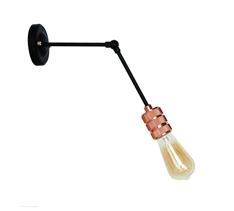 Колір кріплення до стіни - чорний Матеріал кріплення - метал Тип кріплення - настінний Патрон - AMP 21 Колір патрона - рожеве золото (rose gold) Тип цоколя - Е27 Максимальна потужність лампочки 60 Ватів Можливе використання лампи : світлодіодна, енергозбережна, розжарювання, лампа Едісона Комплектація лампою : немає