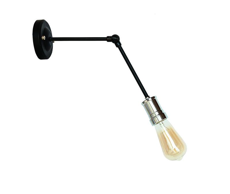 Колір кріплення до стіни - чорний Матеріал кріплення - метал Тип кріплення - настінний Патрон - AMP 20 Колір патрона - хром Тип цоколя - Е27 Максимальна потужність лампочки 60 Ватів Можливе використання лампи : світлодіодна, енергозбережна, розжарювання, лампа Едісона Комплектація лампою : немає