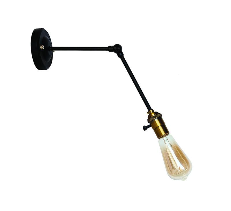 Колір кріплення до стіни - чорний Матеріал кріплення - метал Тип кріплення - настінний Патрон - AMP 19 Колір патрона - золото Тип цоколя - Е27 Максимальна потужність лампочки 60 Ватів Можливе використання лампи : світлодіодна, енергозбережна, розжарювання, лампа Едісона Комплектація лампою : немає