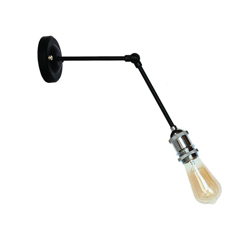 Колір кріплення до стіни - чорний Матеріал кріплення - метал Тип кріплення - настінний Патрон - AMP 12 Колір патрона - хром Тип цоколя - Е27 Максимальна потужність лампочки 60 Ватів Можливе використання лампи : світлодіодна, енергозбережна, розжарювання, лампа Едісона Комплектація лампою : немає