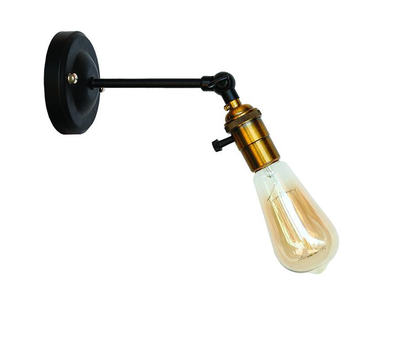 Колір кріплення до стіни - чорний Матеріал кріплення - метал Тип кріплення - настінний Патрон - AMP 19 Колір патрона - золото Тип цоколя - Е27 Максимальна потужність лампочки 60 Ватів Можливе використання лампи : світлодіодна, енергозбережна, розжарювання, лампа Едісона Комплектація лампою : немає