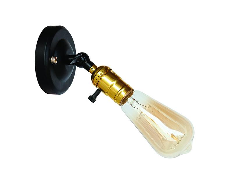 Колір кріплення до стіни - чорний Матеріал кріплення - метал Тип кріплення - настінний Патрон - AMP 34 Колір патрона - золото Тип цоколя - Е27 Максимальна потужність лампочки 60 Ватів Можливе використання лампи : світлодіодна, енергозбережна, розжарювання, лампа Едісона Комплектація лампою : немає
