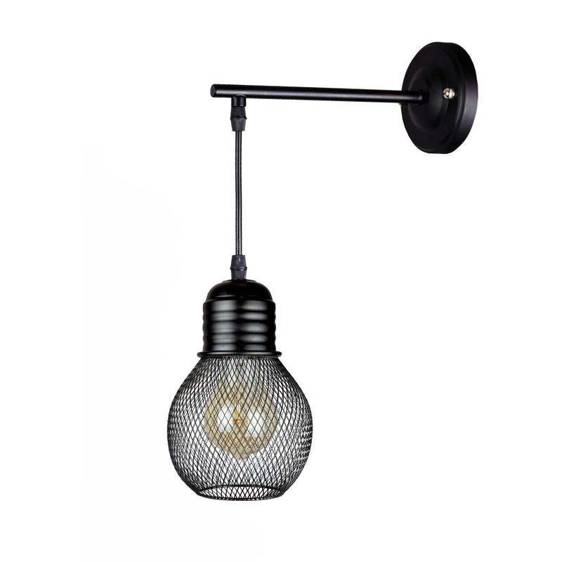 Фігурна бра з довгим тримачем 907W004F2-1 BK Розмір плафона: 115х175мм Діаметр основи: 105мм Тип цоколя: Е27 Колір: чорний Матеріал: метал