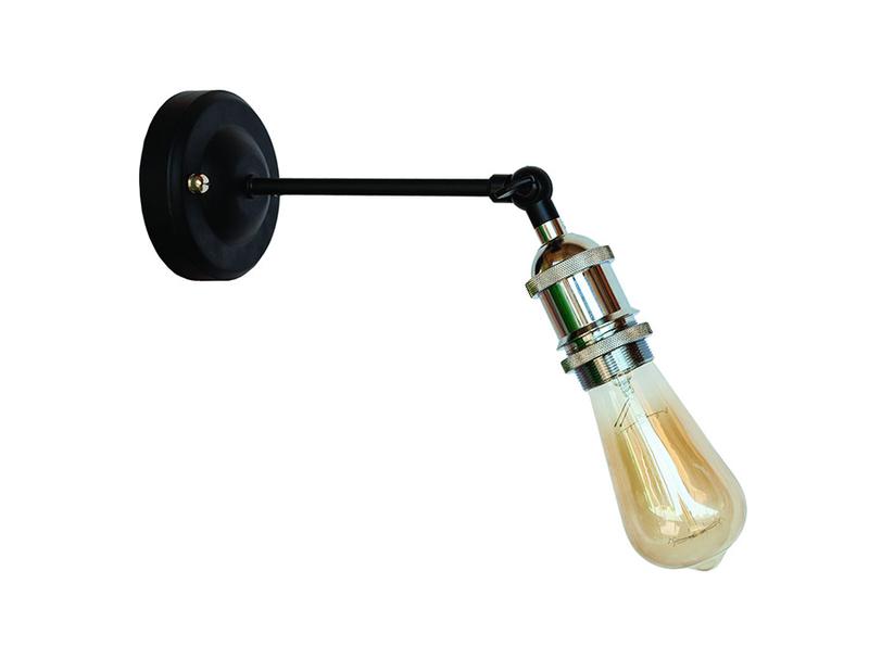 Колір кріплення до стіни - чорний Матеріал кріплення - метал Тип кріплення - настінний Патрон - AMP 12 Колір патрона - хром Тип цоколя - Е27 Максимальна потужність лампочки 60 Ватів Можливе використання лампи : світлодіодна, енергозбережна, розжарювання, лампа Едісона Комплектація лампою : немає