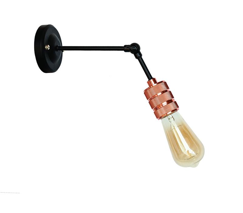 Колір кріплення до стіни - чорний Матеріал кріплення - метал Тип кріплення - настінний Патрон - AMP 21 Колір патрона - рожеве золото (rose gold) Тип цоколя - Е27 Максимальна потужність лампочки 60 Ватів Можливе використання лампи : світлодіодна, енергозбережна, розжарювання, лампа Едісона Комплектація лампою : немає