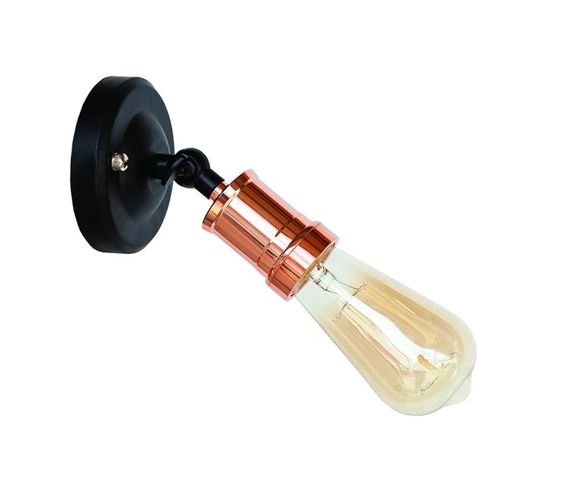 Колір кріплення до стіни - чорний Матеріал кріплення - метал Тип кріплення - настінний Патрон - AMP 20 Колір патрона - рожеве золото (rose gold) Тип цоколя - Е27 Максимальна потужність лампочки 60 Ватів Можливе використання лампи : світлодіодна, енергозбережна, розжарювання, лампа Едісона Комплектація лампою : немає