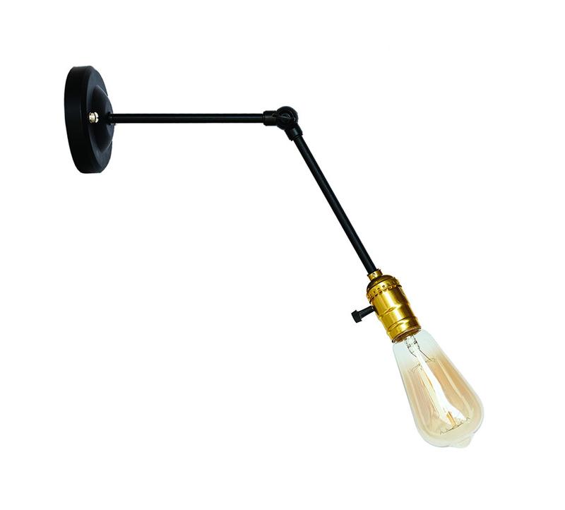 Колір кріплення до стіни - чорний Матеріал кріплення - метал Тип кріплення - настінний Патрон - AMP 34 Колір патрона - золото Тип цоколя - Е27 Максимальна потужність лампочки 60 Ватів Можливе використання лампи : світлодіодна, енергозбережна, розжарювання, лампа Едісона Комплектація лампою : немає
