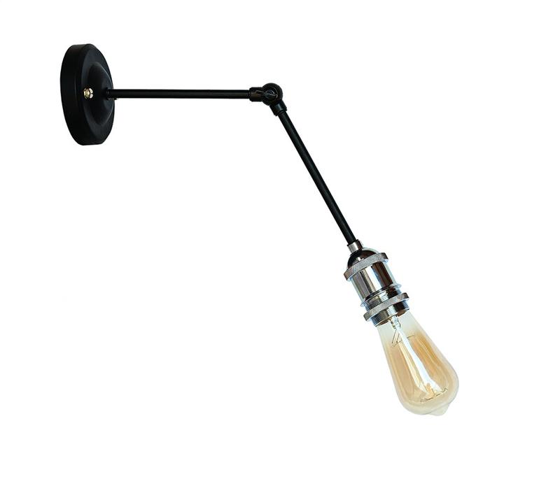 Колір кріплення до стіни - чорний Матеріал кріплення - метал Тип кріплення - настінний Патрон - AMP 12 Колір патрона - хром Тип цоколя - Е27 Максимальна потужність лампочки 60 Ватів Можливе використання лампи : світлодіодна, енергозбережна, розжарювання, лампа Едісона Комплектація лампою : немає