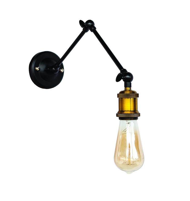 Колір кріплення до стіни - чорний Матеріал кріплення - метал Тип кріплення - настінний Патрон - AMP 11 Колір патрона - золото Тип цоколя - Е27 Максимальна потужність лампочки 60 Ватів Можливе використання лампи : світлодіодна, енергозбережна, розжарювання, лампа Едісона Комплектація лампою : немає