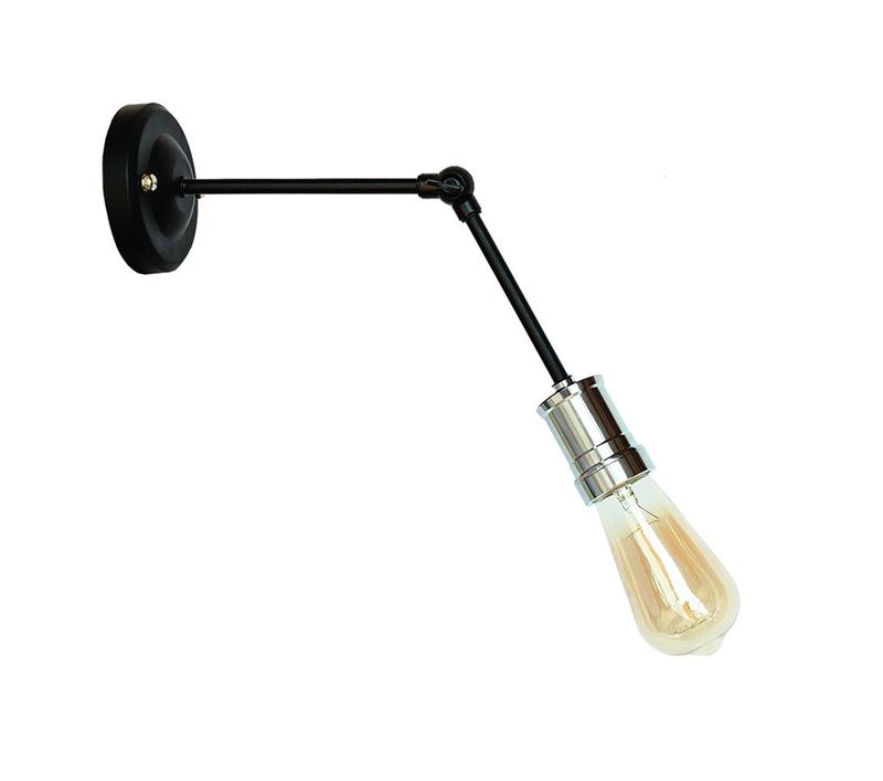 Колір кріплення до стіни - чорний Матеріал кріплення - метал Тип кріплення - настінний Патрон - AMP 20 Колір патрона - хром Тип цоколя - Е27 Максимальна потужність лампочки 60 Ватів Можливе використання лампи : світлодіодна, енергозбережна, розжарювання, лампа Едісона Комплектація лампою : немає