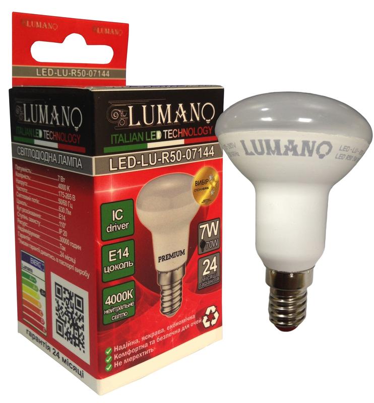 Лампа led r50 7w e14 4000k 630lm lu-r50-07144 tm lumano