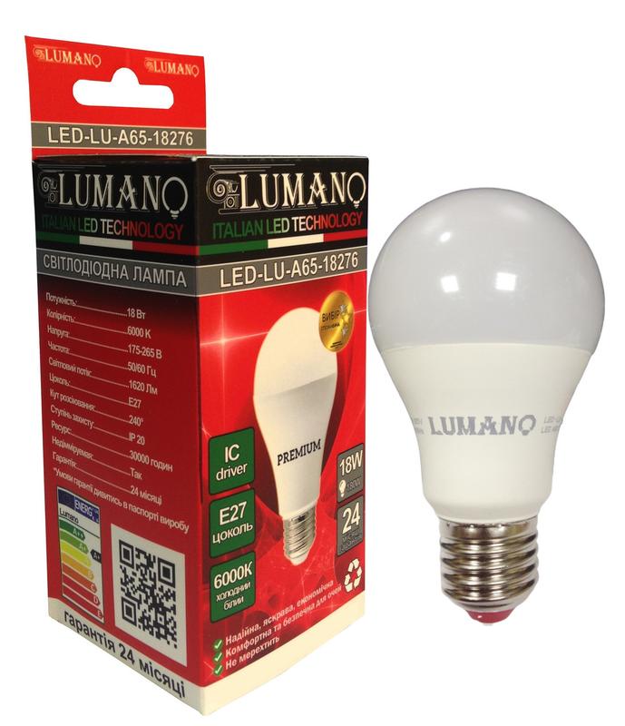 Лампа led a65 18w e27 6000k 1620lm tm lumano