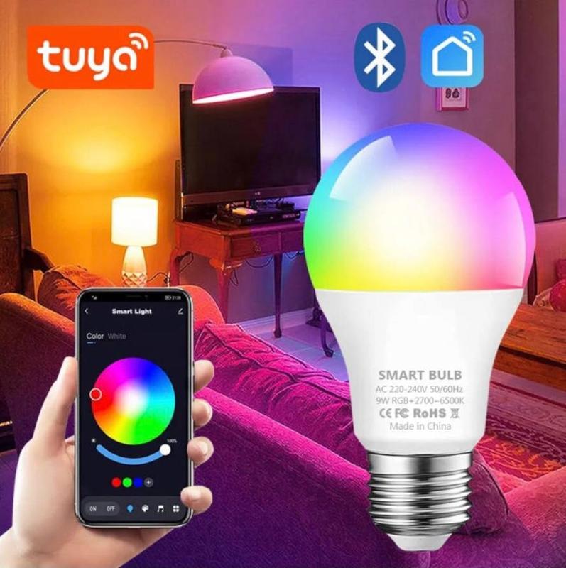 Розумна світлодіодна лампочка wifi, tuya, 9 вт, bluetooth, rgb /