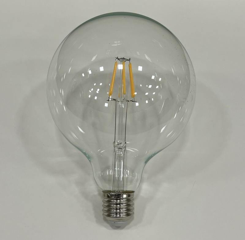 - Материал - стекло - Цвет стекла - прозрачный - Тип - светодиодный, экономный - Форма - G125 - Мощность - 6W - Цвет свечения - тёплый (2700К) - Тип цоколя - Е27 - Размер - 12,5см - Особенности - диммируемая (подходит для выключателей с изменением яркости)