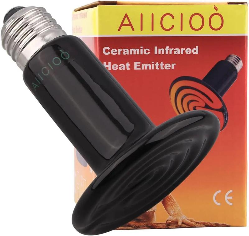 Ця лампа для обігріву рептилій виготовлена з твердого керамічного елемента, міцний матеріал служить протягом тривалого часу використання, ідеально підходить для тераріумів з високою вологістю Ця лампа для обігріву тераріуму, яка не містить світла, випромінює лише інтенсивне інфрачервоне тепло, яке «проникає до м’язів», створює більш комфортне середовище для всіх типів рептилій, земноводних, птахів, хом’яків. Конструкція теплих колб віварію з плоскою поверхнею є більш ефективною та довговічнішою, ніж конічна конструкція, яка накопичує надлишок тепла всередині, зрештою карбонізуючи елемент Ця лампа Lizards Light 220-240 вольт, 100 ват, підходить до всіх стандартних патронів E27, діаметр нагрівальної поверхні: 7,5 см. Наш брудер для курей широко використовується для утримання в теплі кліток для птахів, рептилій, курників і віварію
