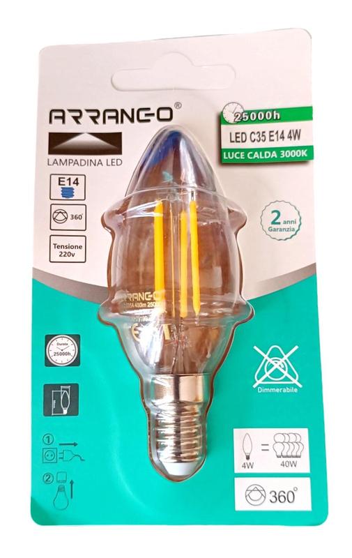 Откройте для себя эффективность и долговечность с лампой ARRANGO LED E14 мощностью 4W. Эта лампа обеспечивает теплый свет (3000K) и имеет углы распределения света 360°, что делает ее идеальным выбором для освещения любого помещения. Благодаря потреблению всего 4W, вы сможете сэкономить до 90% энергии по сравнению с традиционными лампами мощностью 40W. Лампа имеет продолжительность службы до 25,000 часов и обеспечивает мгновенное включение с временем отклика всего 0.055 секунды. Ее диммирующие функции позволяют регулировать яркость в соответствии с вашими потребностями. Выберите надежность и качество от производителя Donghai Yifeng Lampa Co.,Ltd с гарантией на 2 года. Преимущества: - Энергоэффективность: 4 кВт/1000 ч - Соответствие стандартам ROHS - Импортированная продукция Улучшите свое освещение с ARRANGO LED лампой!