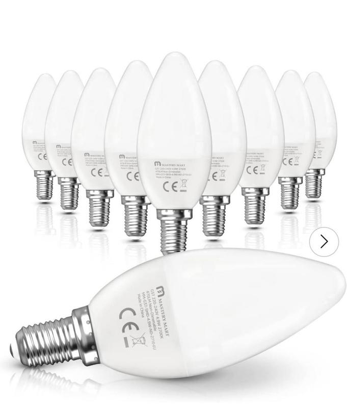 Энергосберегающие светодиодные лампы с цоколем E14 в форме «свечи» C37 обеспечивают теплый белый свет (2700K) с яркостью 470 лм. Мощность 4,9 Вт соответствует традиционной лампе накаливания 40 Вт, что позволяет экономить электроэнергию без потери качества освещения. Идеально подходят для люстр, бра и декоративных светильников. В наборе 10 штук.