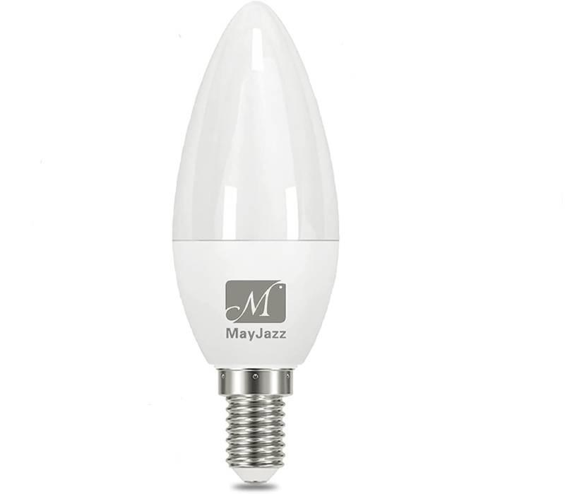 Меньше энергии и экономия денег. Одобренная CE, светодиодная лампа MayJazz C37 мощностью 5 Вт заменяет старые обычные лампочки накаливания мощностью 40 Вт и экономит 90% энергии. Таким образом Вы экономите расходы на электроэнергию для своей семьи. Широкое применение. Лампа MayJazz с цоколем E14 идеально подходит для замены всех существующих обычных лампочек E14. Идеально подходит для использования в большинстве помещений, включая кухни, гостиные, офисы и т. д. Превосходное качество света. С индексом цветопередачи CRI 80+ вы можете видеть цвета такими, какими они должны быть. Без нагрева. Немедленно обеспечивает световой поток 400 люмен, не требуя времени ожидания для прогрева до полной яркости. Благодаря цветовой температуре 3000К эта лампа обеспечивает тёплый белый свет, создавая очень приятную атмосферу. Она будет идеальна для жилых помещений, кафе, гостиниц, уютных офисов, салонов красоты, SPA и т.д. Долгий срок службы. Эти лампы имеют срок службы 25 000 часов, или свыше 22 лет (при использовании 3 часа в день). Технические характеристики: Бренд: MayJazz Количество предметов в упаковке: 1 Цвет: 3000К тёплий белый Форма: свеча Материал: пластик Напряжение: 220В (переменный ток) Тип лампы: LED Тип цоколя: Е14 Энергоэффективность: А+ Световой поток: 400 Люмен Мощность: 5Вт Эквивалент лампы накаливания: 40 Вт Средний час использования: 25000 часов Угол рассеивания: 270 градусов